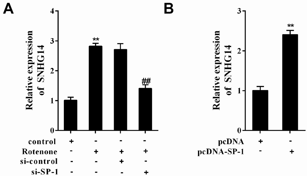 Binding between SP-1 and SNHG14 promoter was enhanced by rotenone