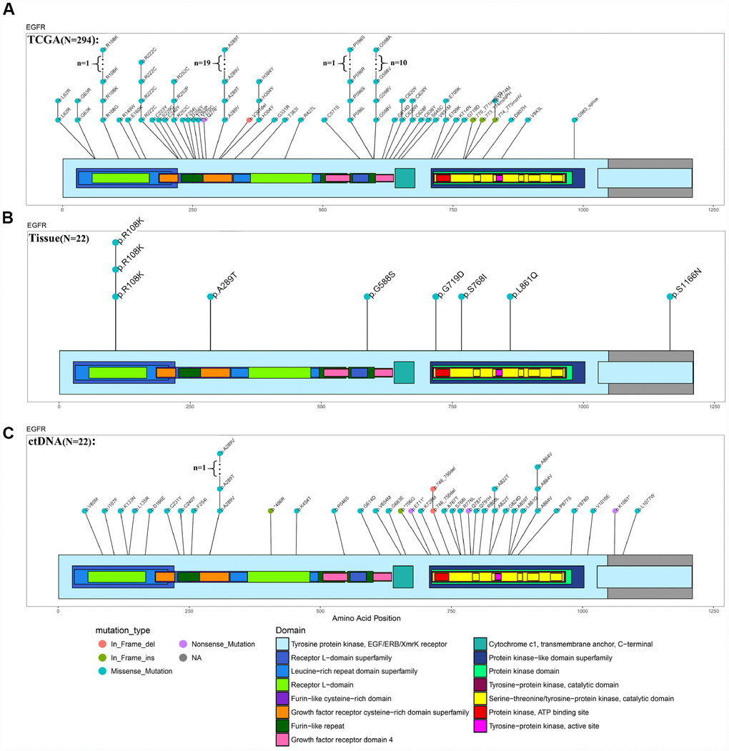 The ctDNA was extracted from the upper centrifugal plasma of patients. A captured ctDNA library was then constructed. The purified library was sequenced using a NovaSeq 6000 sequencer. The ctDNA sequencing method was based on next-generation high-throughput sequencing (NGS) and designed to detect a variety of solid tumor- and drug-related gene mutations. The panel design adopted Roche NimbleGen SeqCap probe design technology and covered hot spots, drug-related mutations and key areas of 1403 genes to ensure the comprehensive detection of hot spots and rare and unknown mutation sites to the maximum extent and to ensure that valuable mutation information for patients was not ignored.