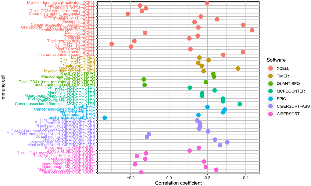 We used TIMER (http://cistrome.dfci.harvard.edu/TIMER/), XCELL (https://xcell.ucsf.edu/), QUANTISEQ, MCPCOUNTER, EPIC, CIBERSORT-ABS, and CIBERSORT algorithms [29] to assess differences in immune cell subpopulations between low- and high-risk groups. Their differences were compared using the Wilcoxon signed-rank test.