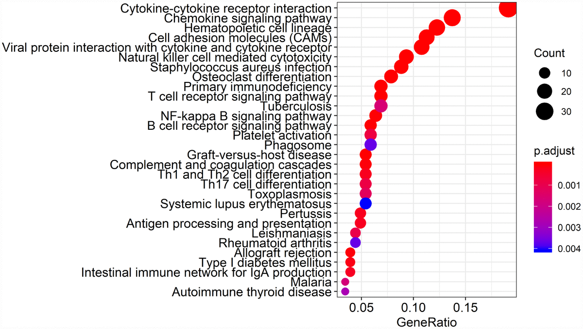 Kyoto Encyclopedia of Genes and Genomes (KEGG) analysis of the 384 intersection genes.