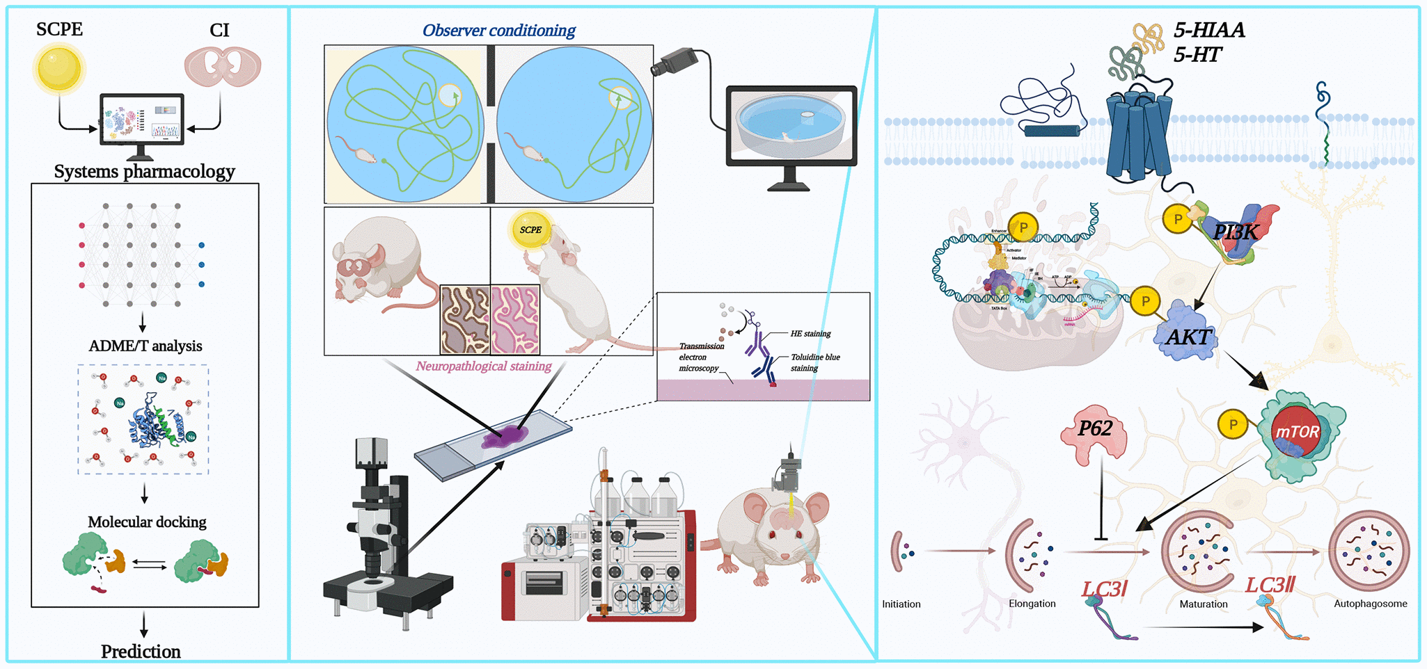 Figure 14. Overall structural diagram of the active components and molecular mechanisms of SCPE in the treatment of CI.
